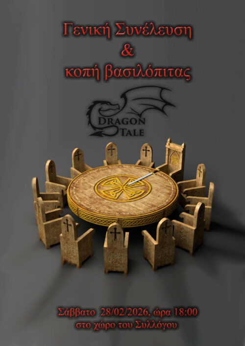 Ο Σύλλογος Dragon Tale καλεί όλα τα μέλη του στη τακτική Γενική Συνέλευση για το 2026, το Σάββατο στις 28 Φεβρουαρίου και ώρα 18:00 στο χώρο του Συλλόγου.